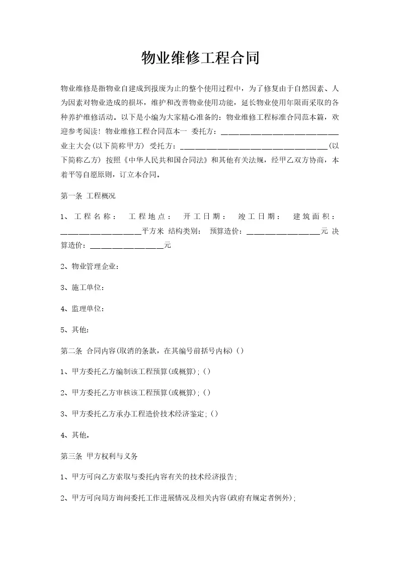 物业维修工程合同