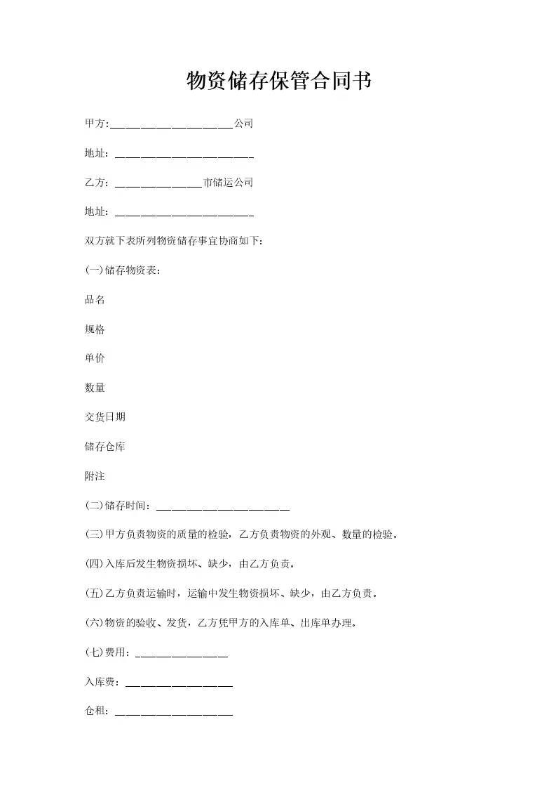 物资储存保管合同书