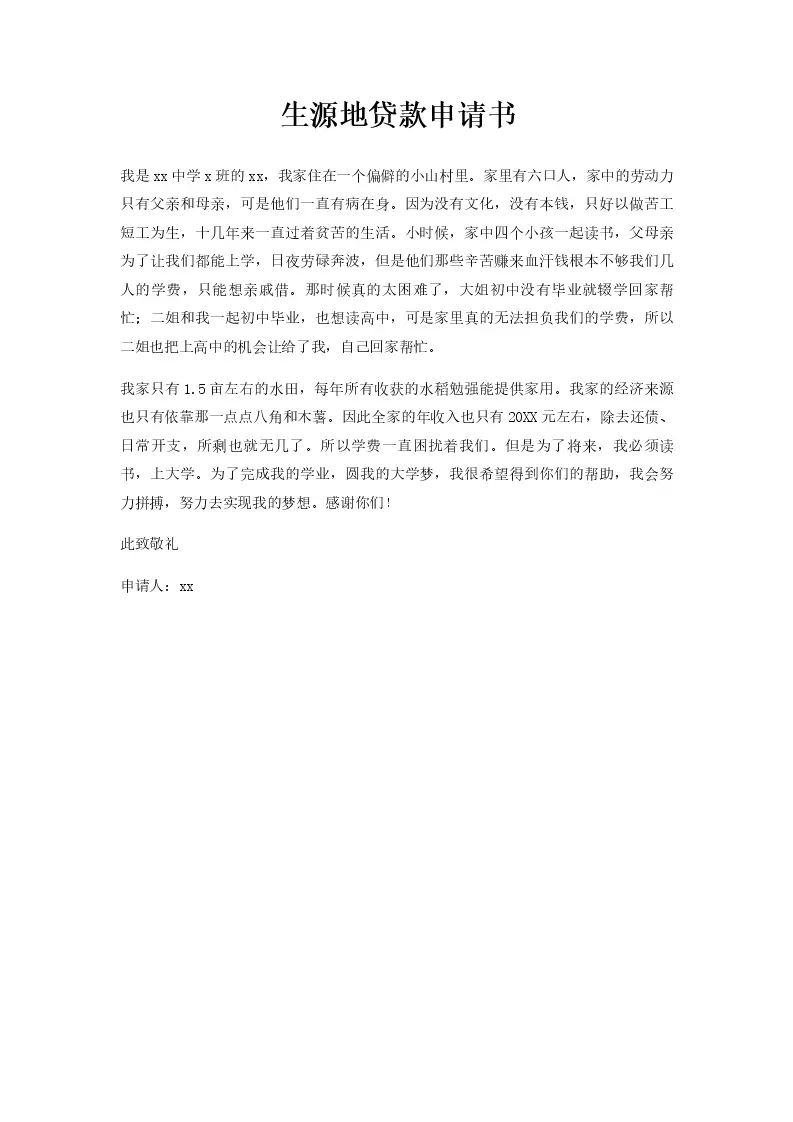 生源地贷款申请书