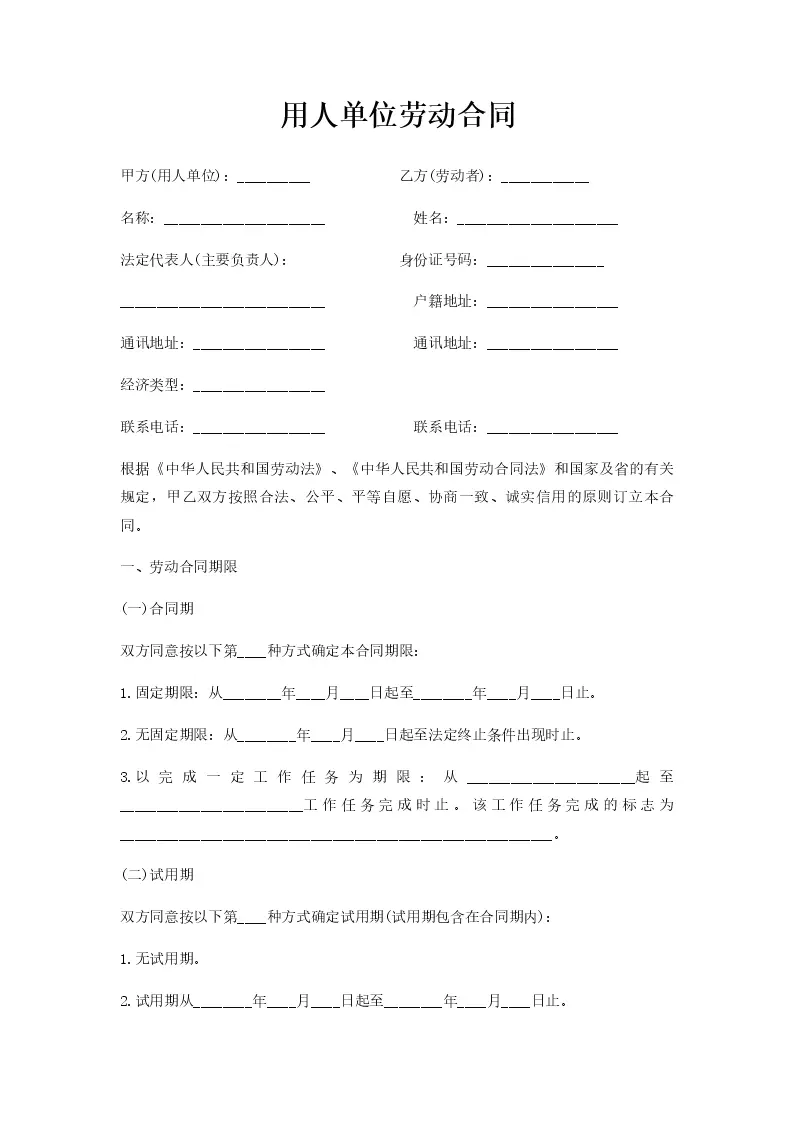 用人单位劳动合同