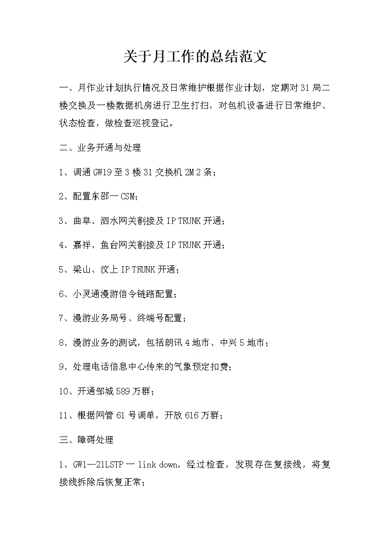 关于月工作的总结范文