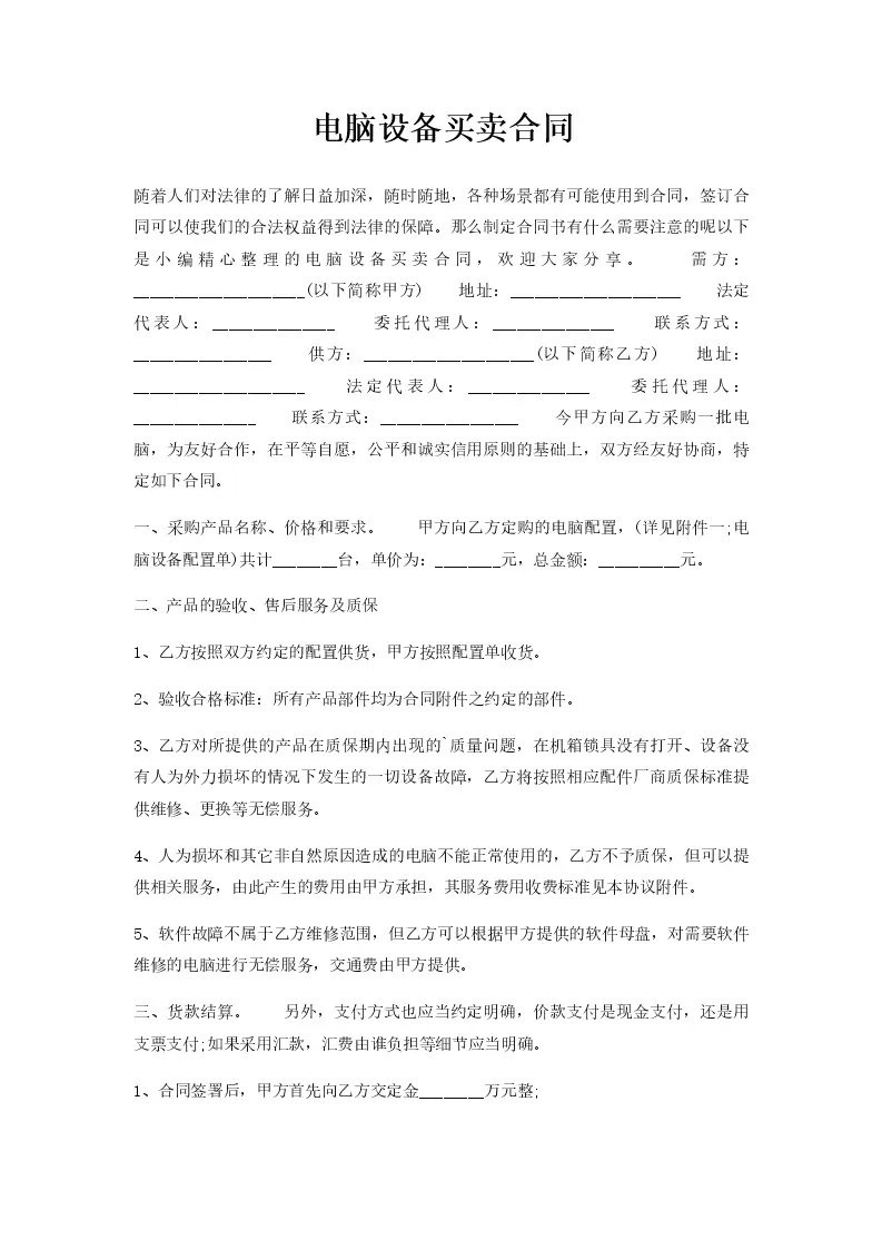 电脑设备买卖合同