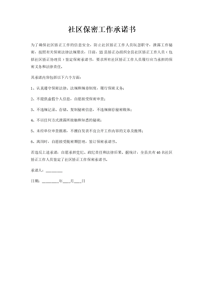 社区保密工作承诺书