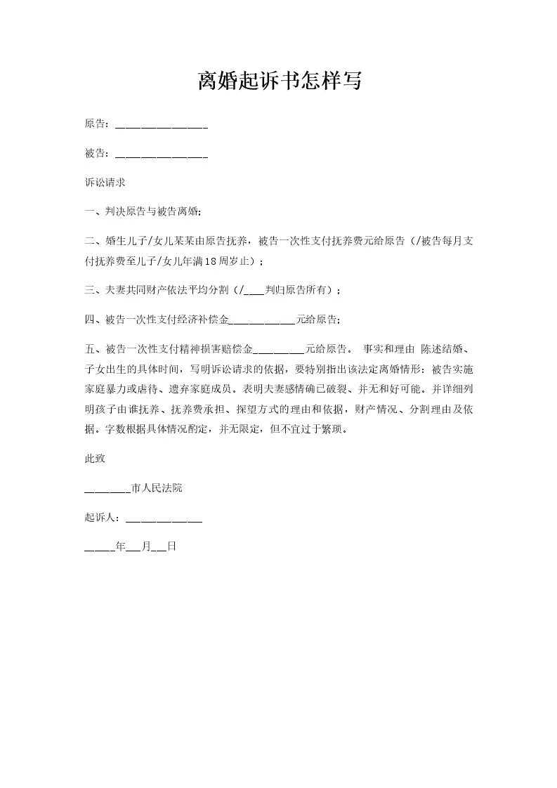离婚起诉书怎样写