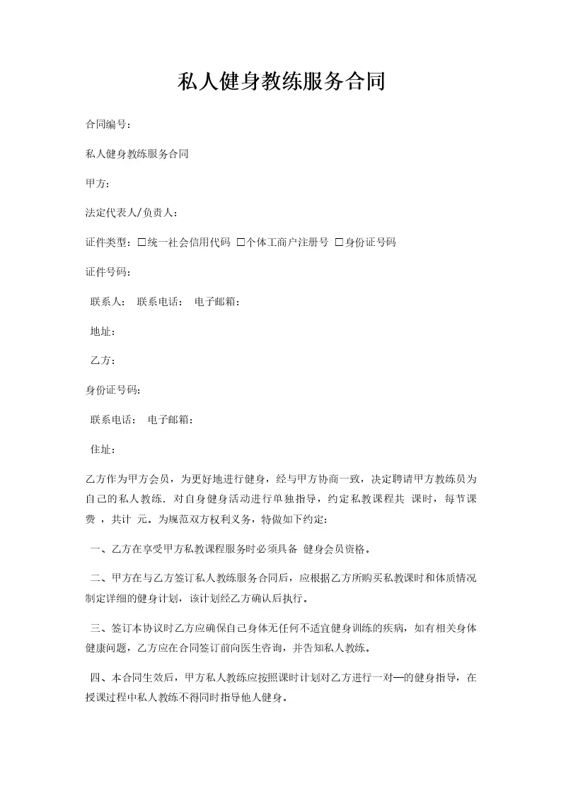私人健身教练服务合同