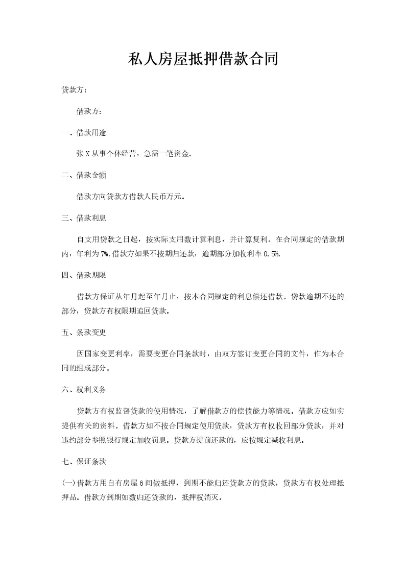 私人房屋抵押借款合同