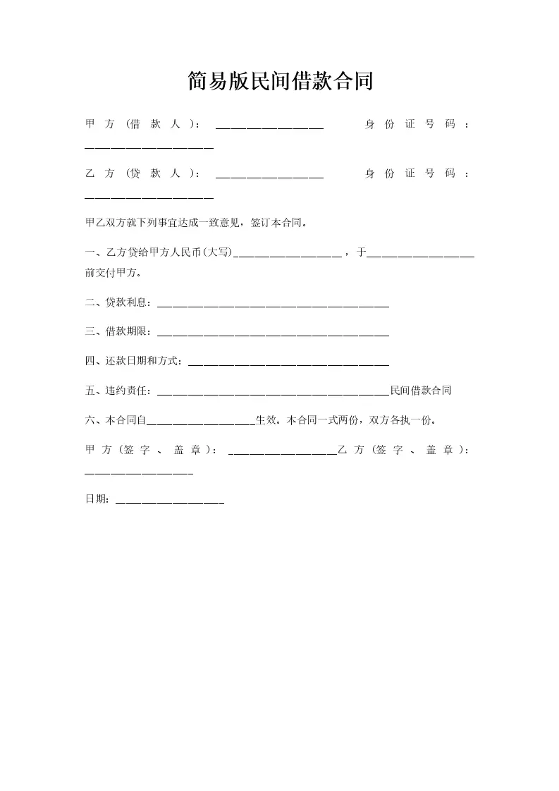 简易版民间借款合同