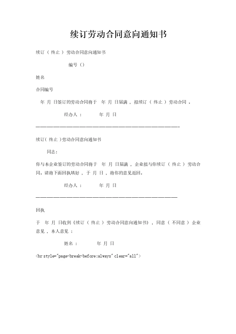 续订劳动合同意向通知书