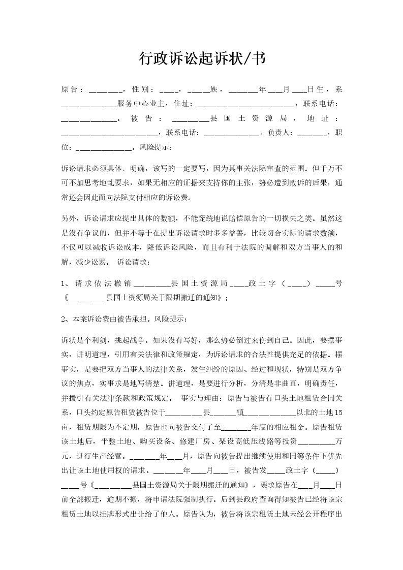 行政诉讼起诉状书