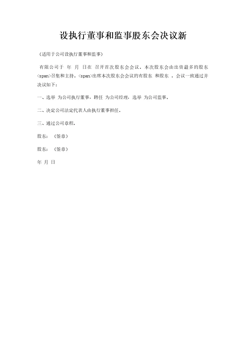 设执行董事和监事股东会决议新