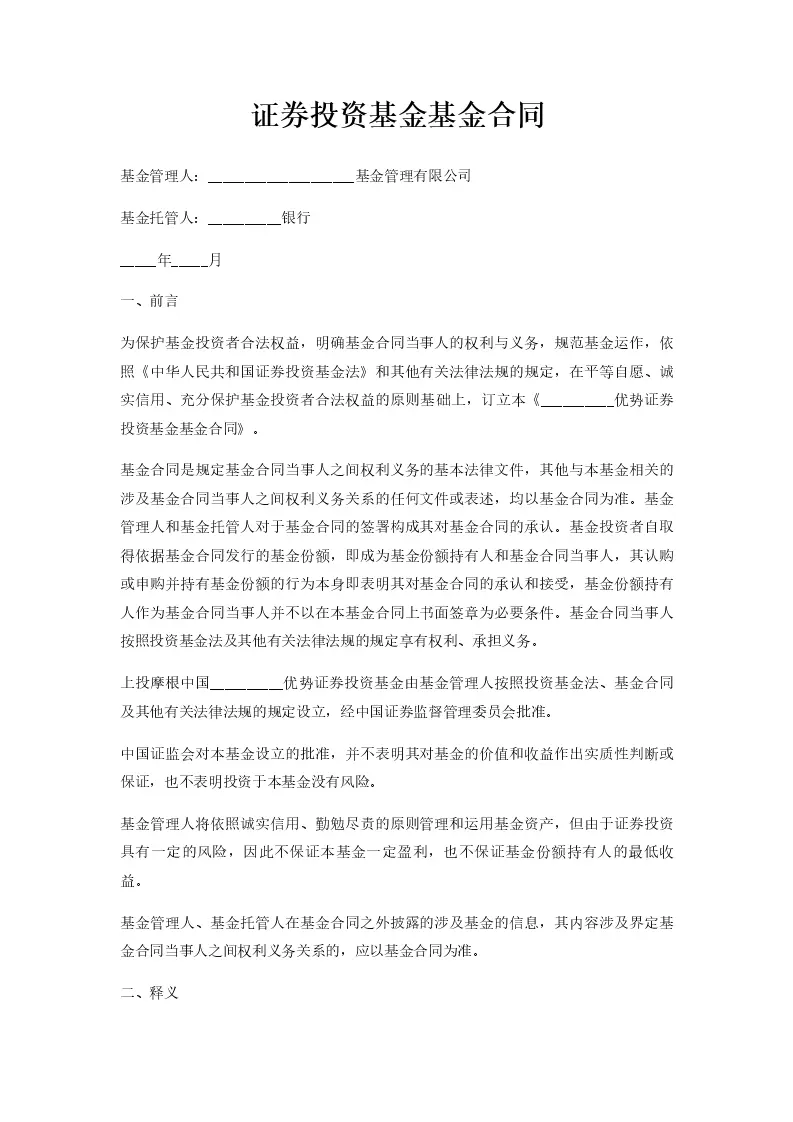证券投资基金基金合同