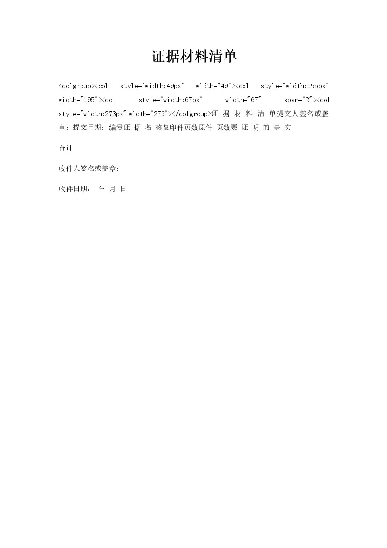 证据材料清单