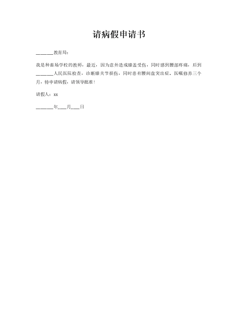 请病假申请书