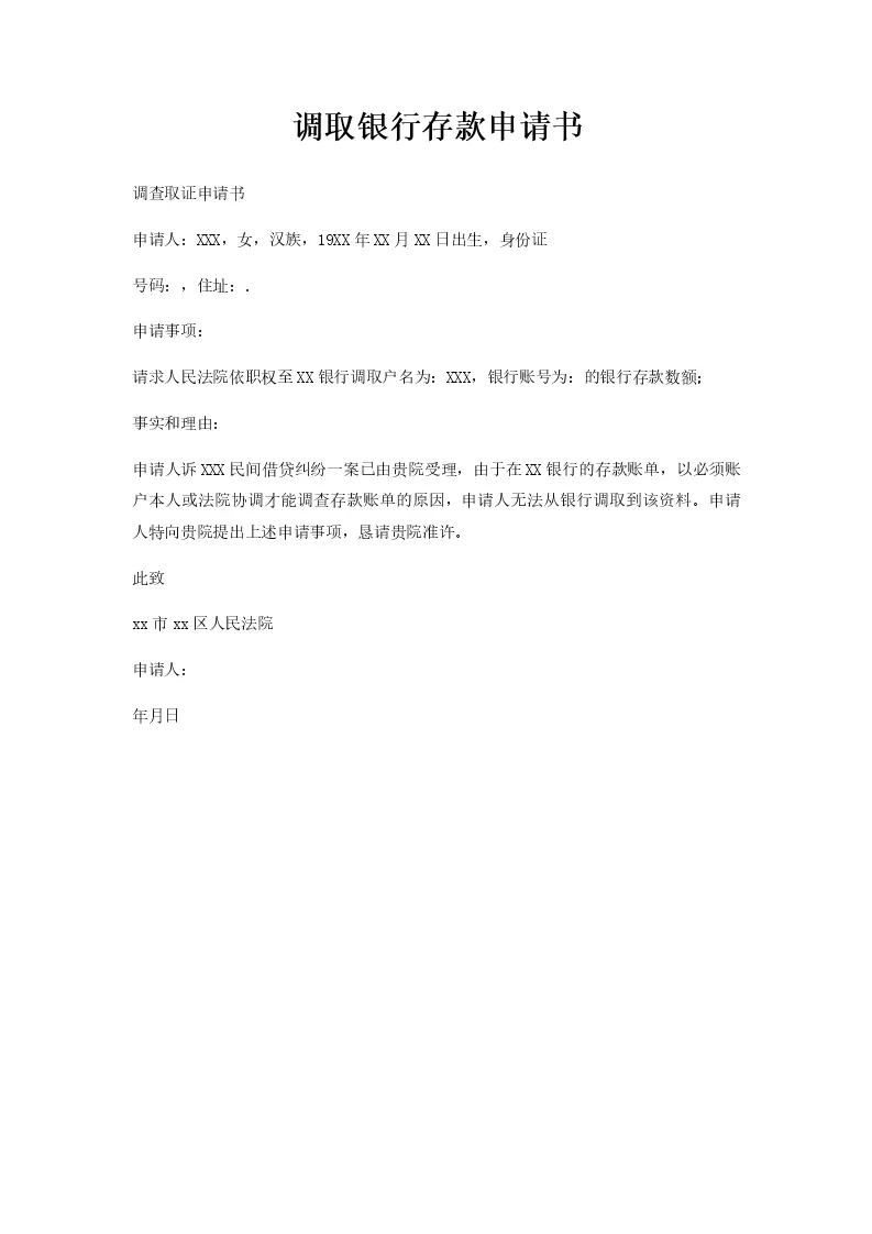 调取银行存款申请书