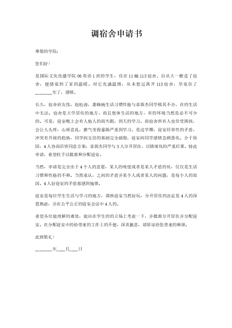 调宿舍申请书