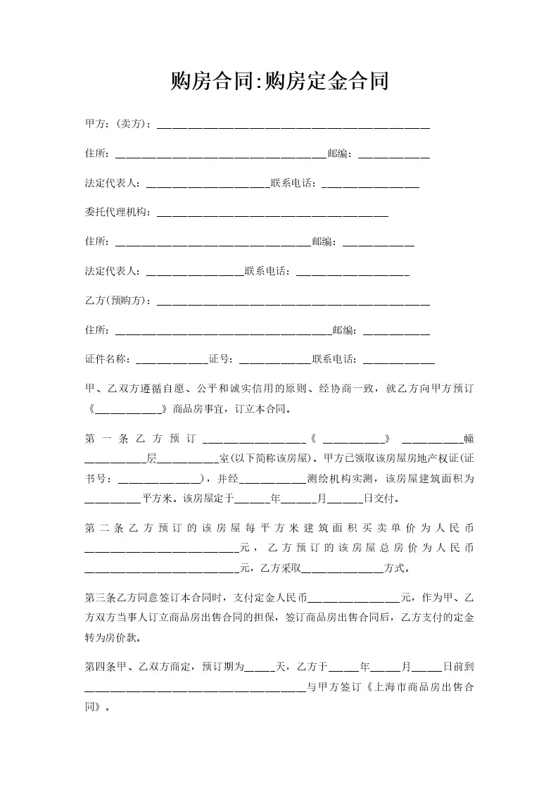 购房合同购房定金合同