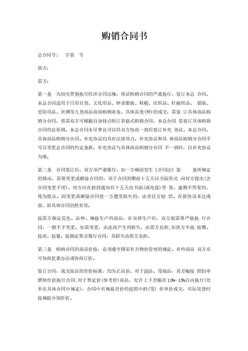 购销合同书