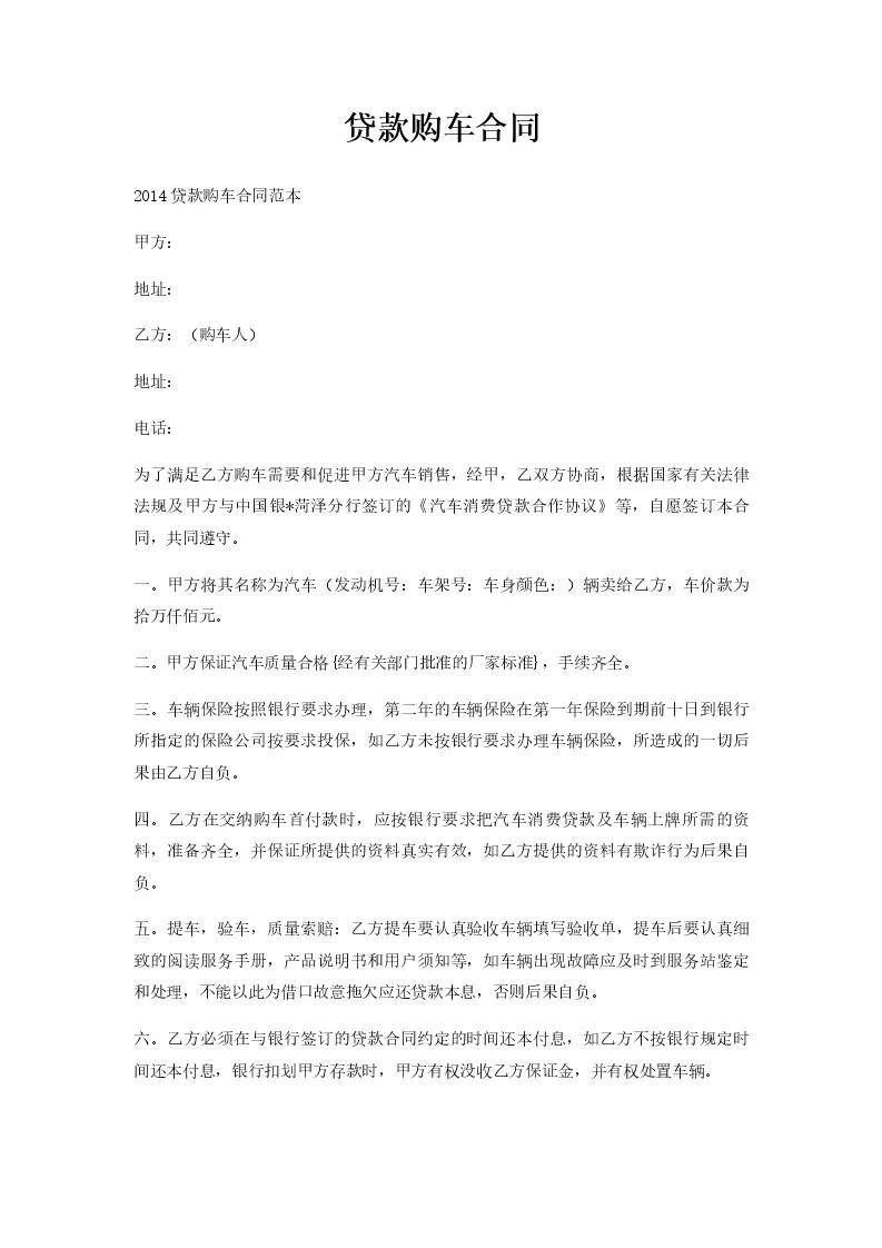 贷款购车合同