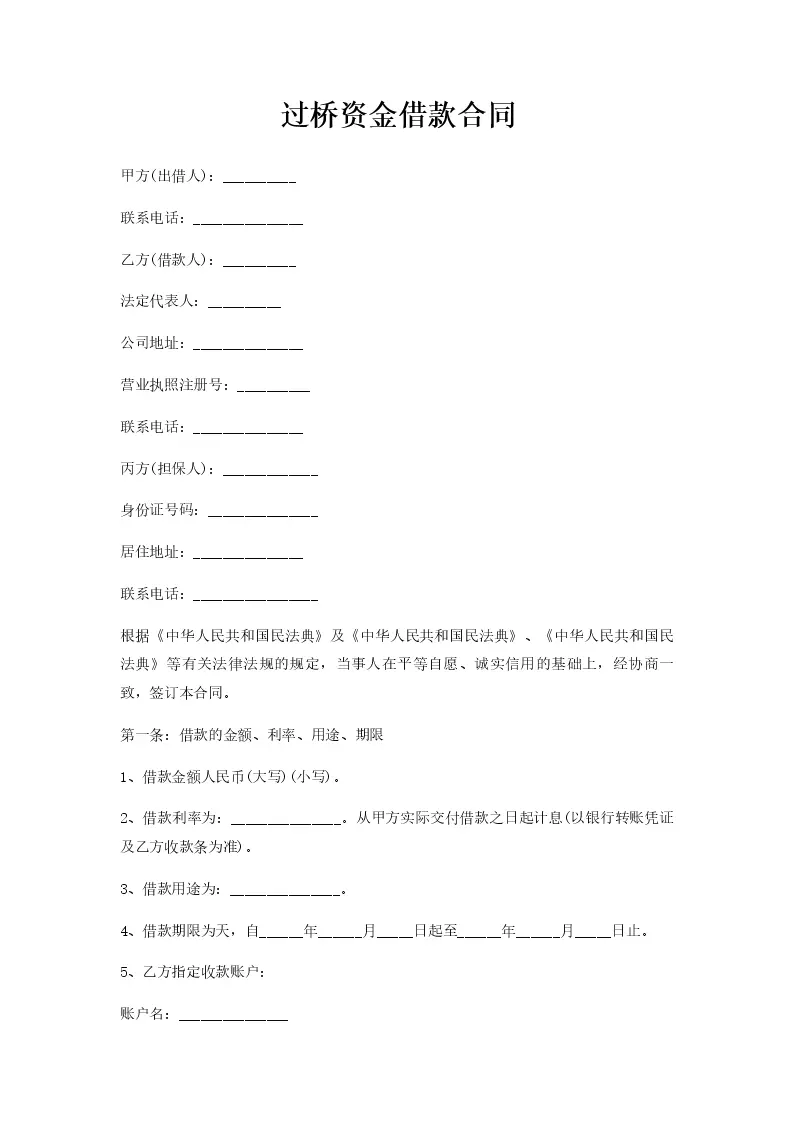 过桥资金借款合同