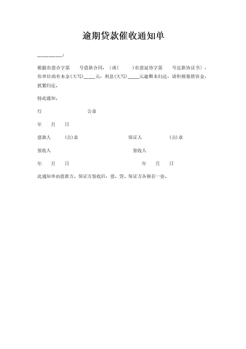逾期贷款催收通知单