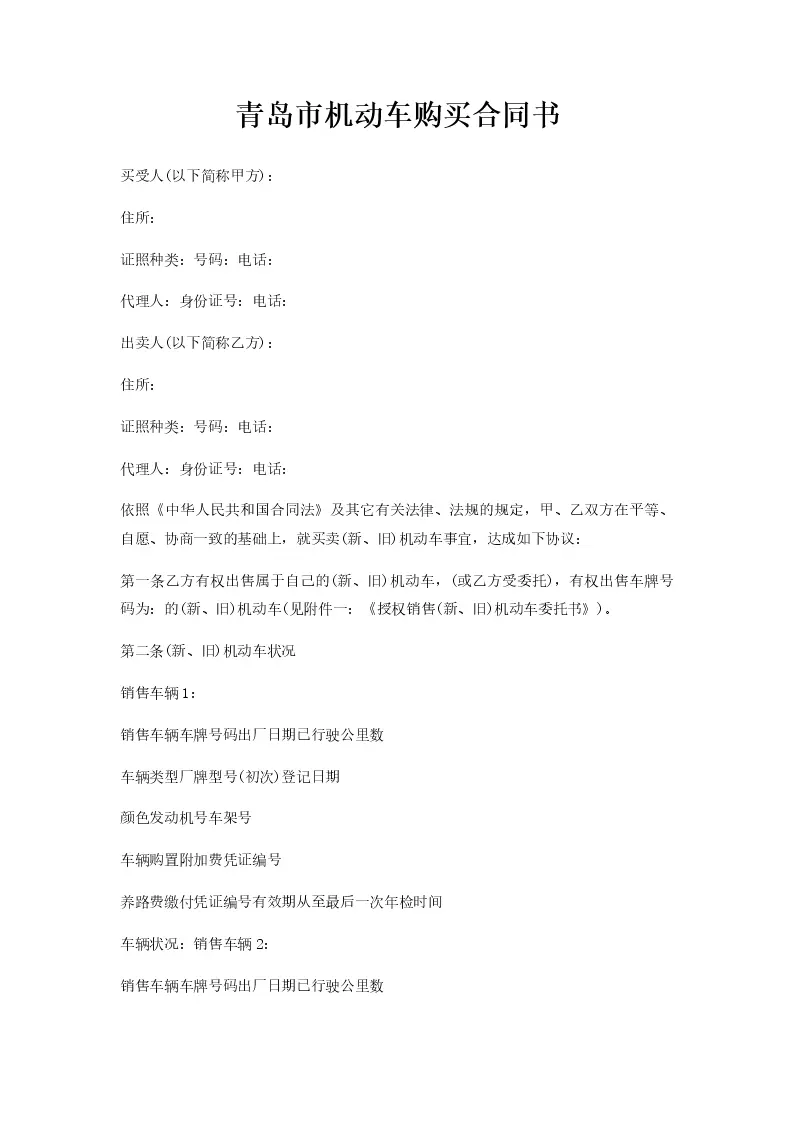 青岛市机动车购买合...