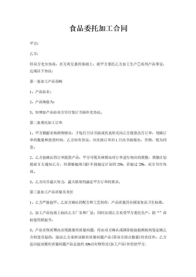 食品委托加工合同