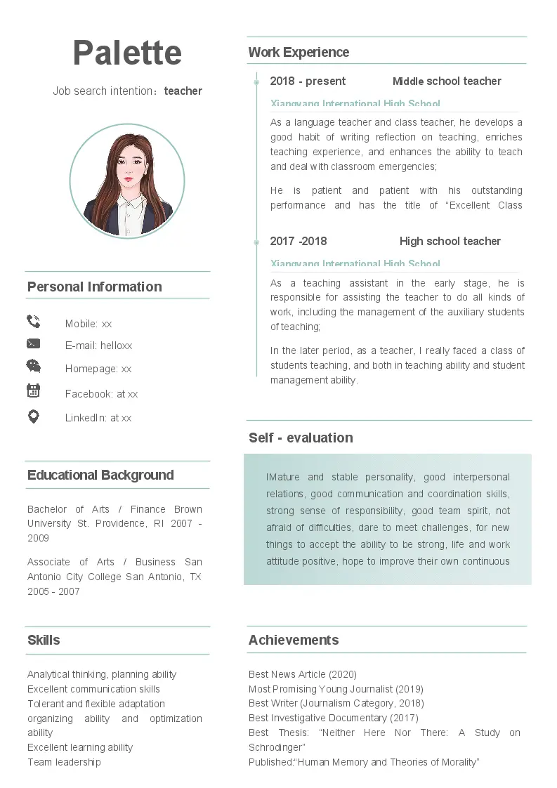 资深教师英文简历模板