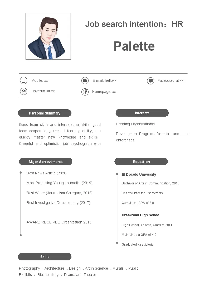 黑白色应届生人力资源英文简历模板