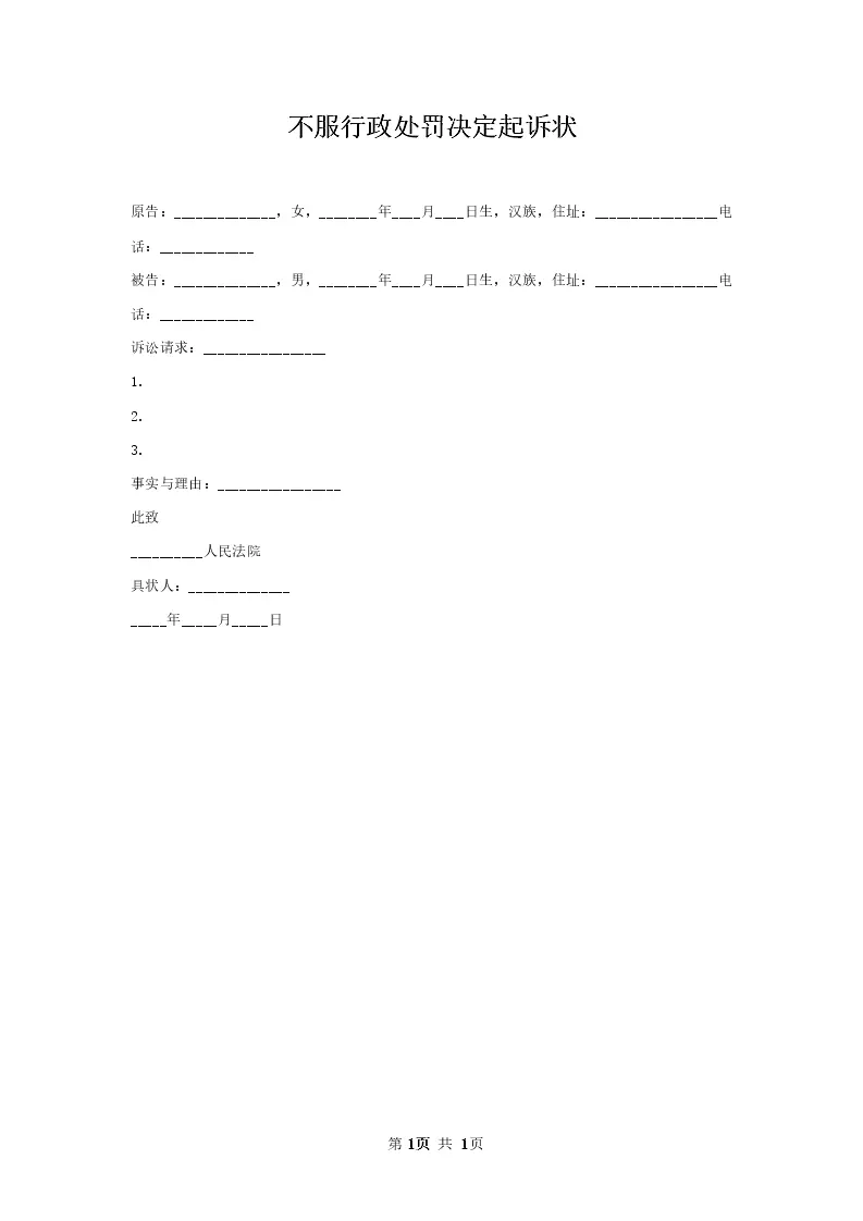 不服行政处罚决定起诉状_