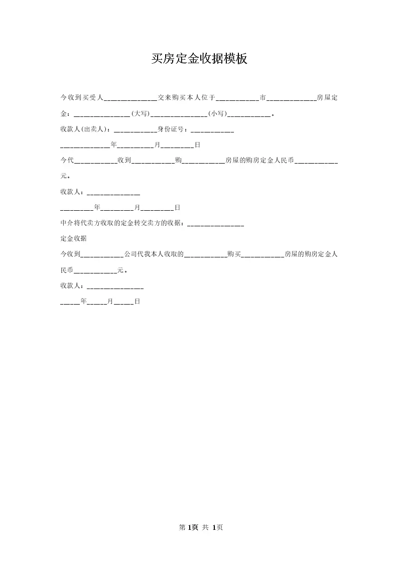 买房定金收据模板