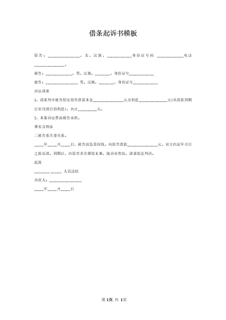 借条起诉书模板