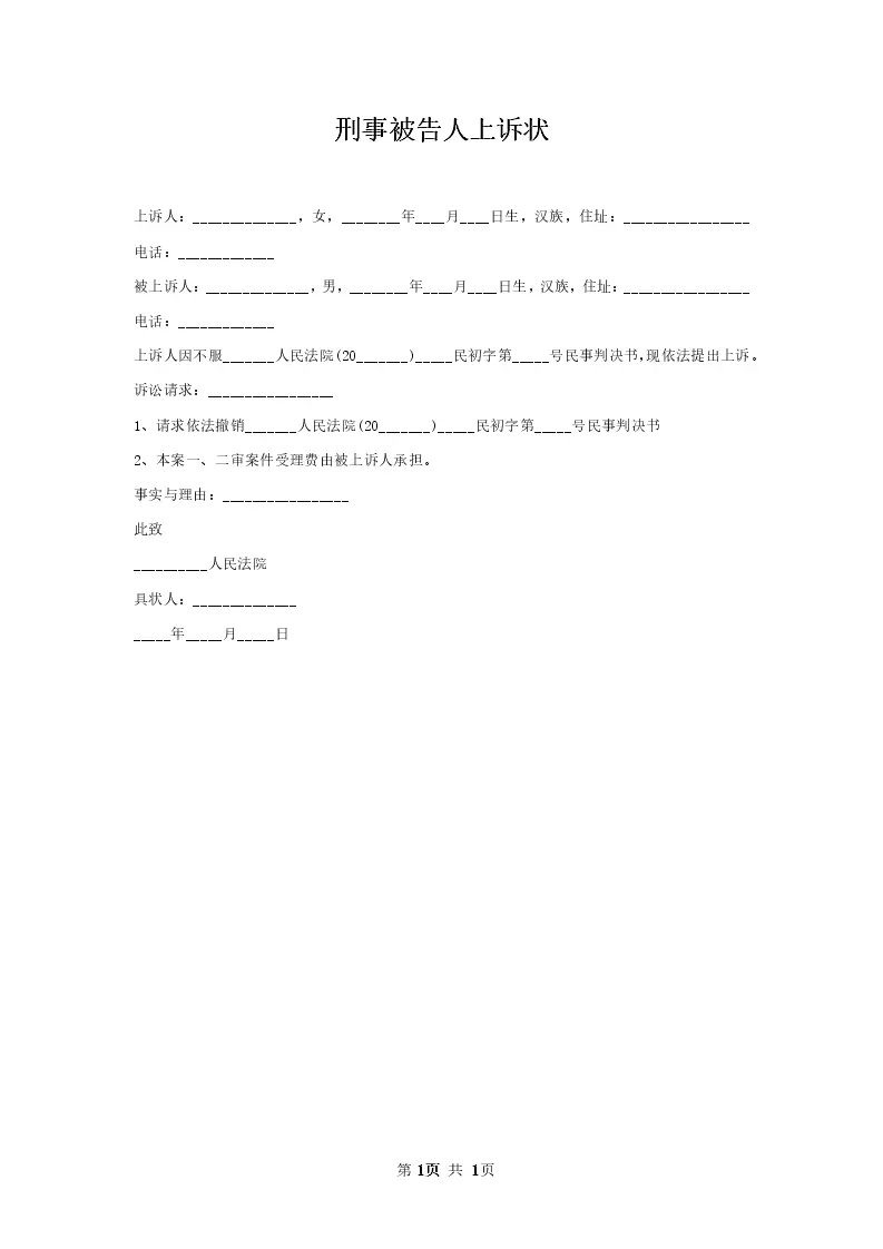 刑事被告人上诉状_