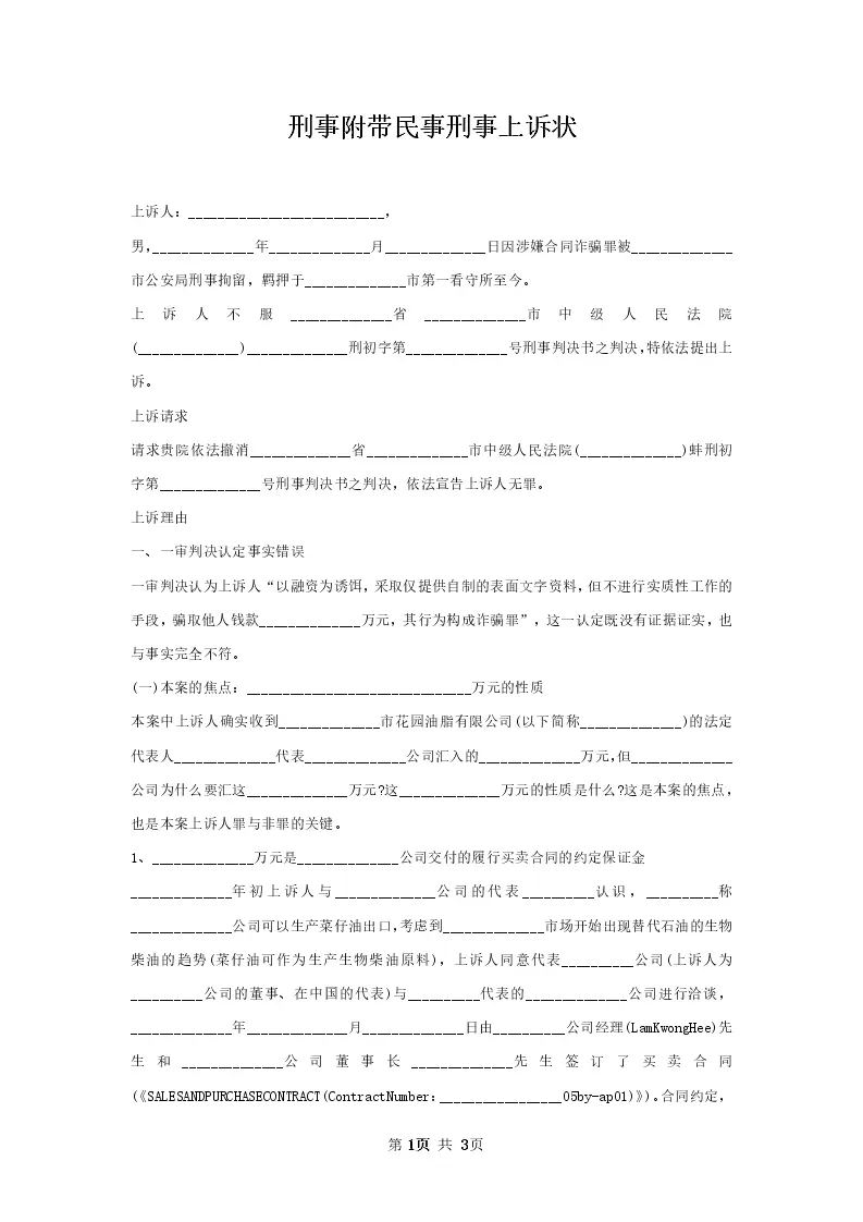 刑事附带民事刑事上诉状