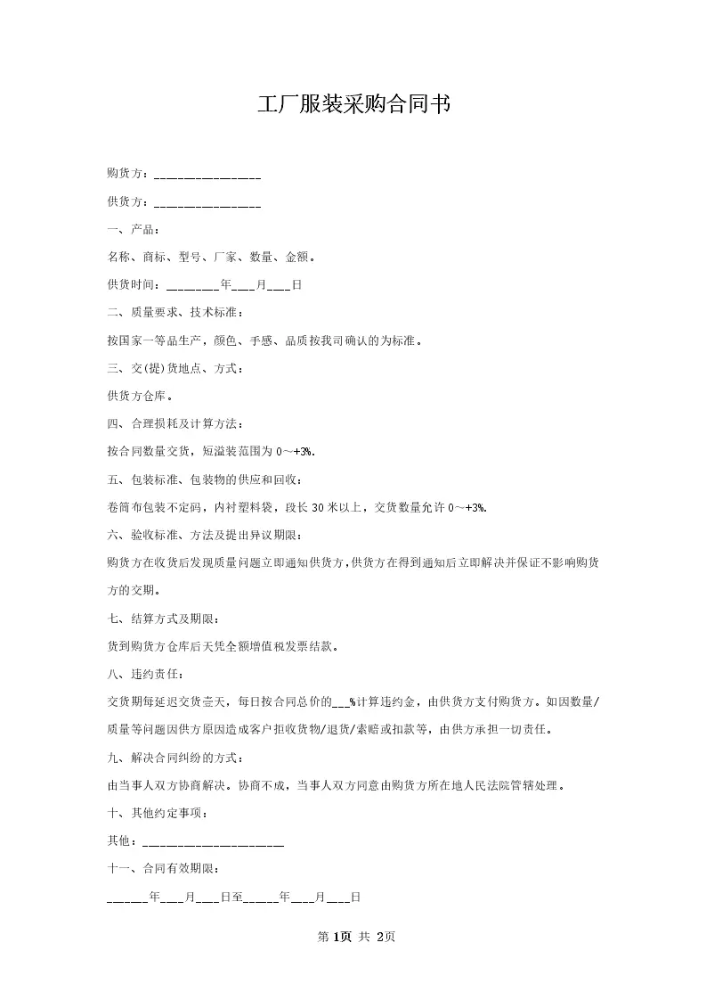 工厂服装采购合同书