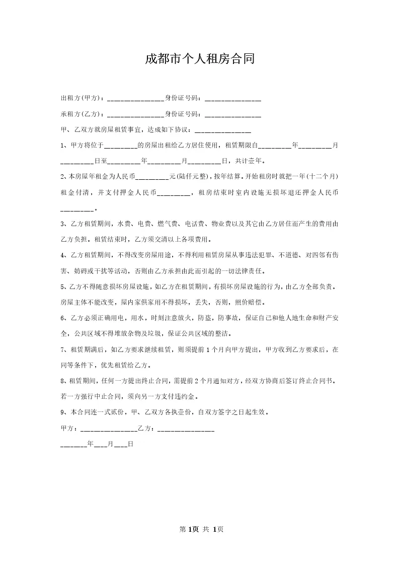 成都市个人租房合同