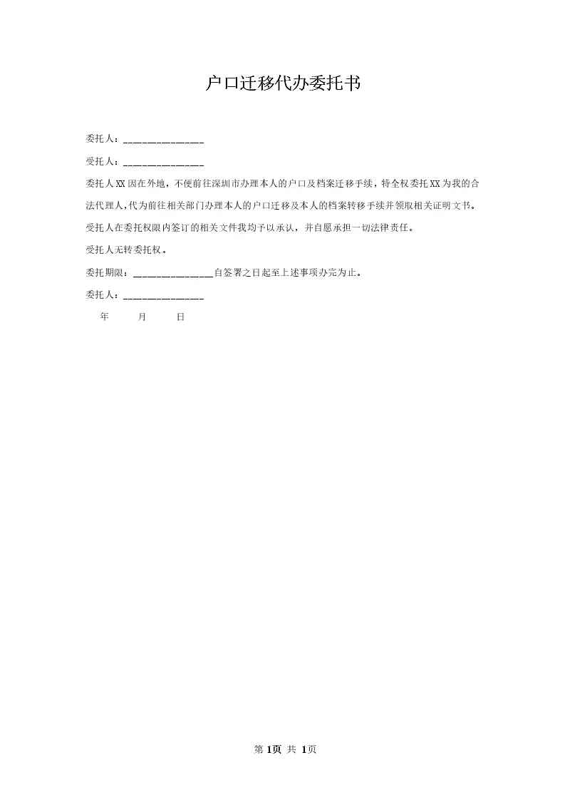 户口迁移代办委托书_