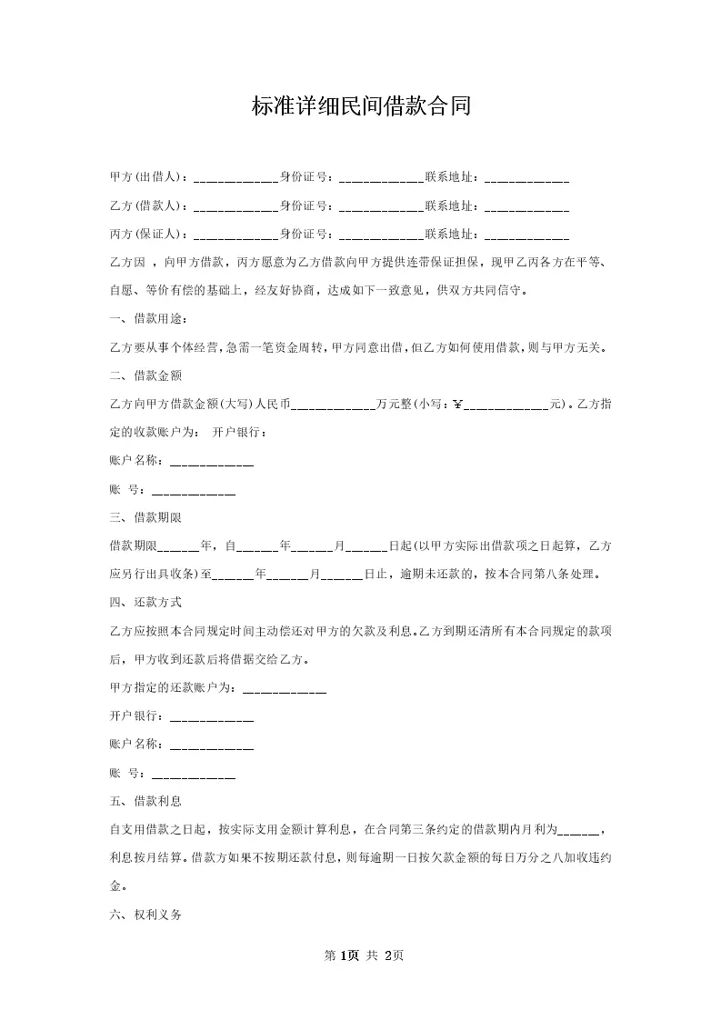 标准详细民间借款合同