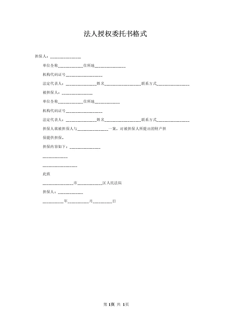 法人授权委托书格式