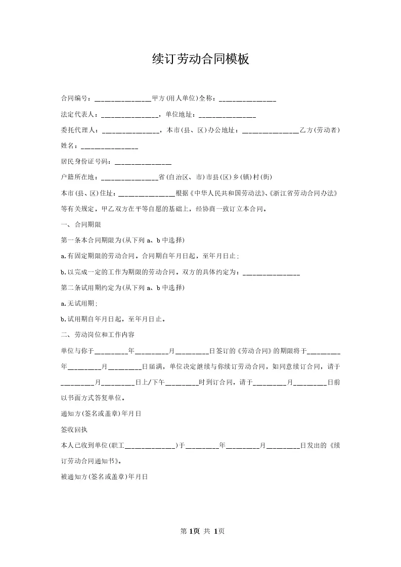 续订劳动合同模板