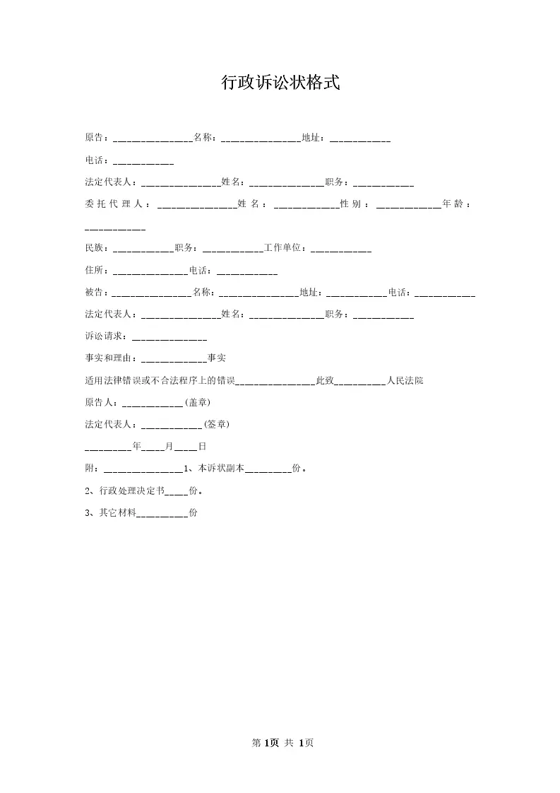 行政诉讼状格式