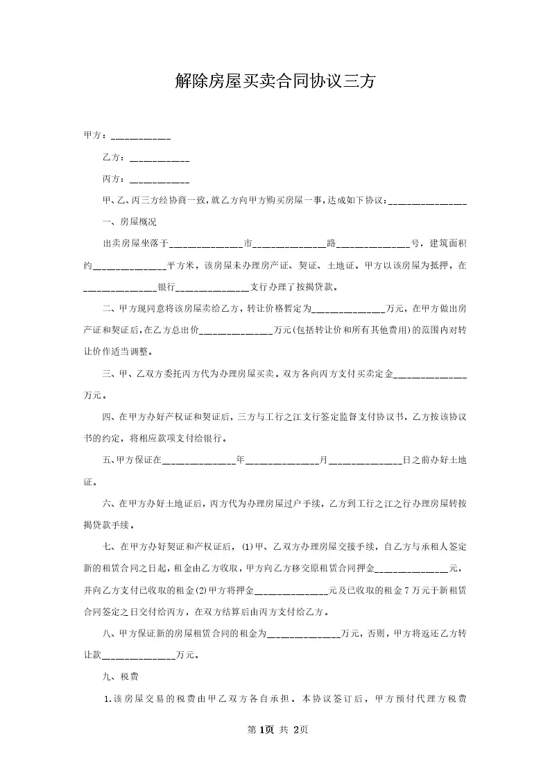 解除房屋买卖合同协议三方