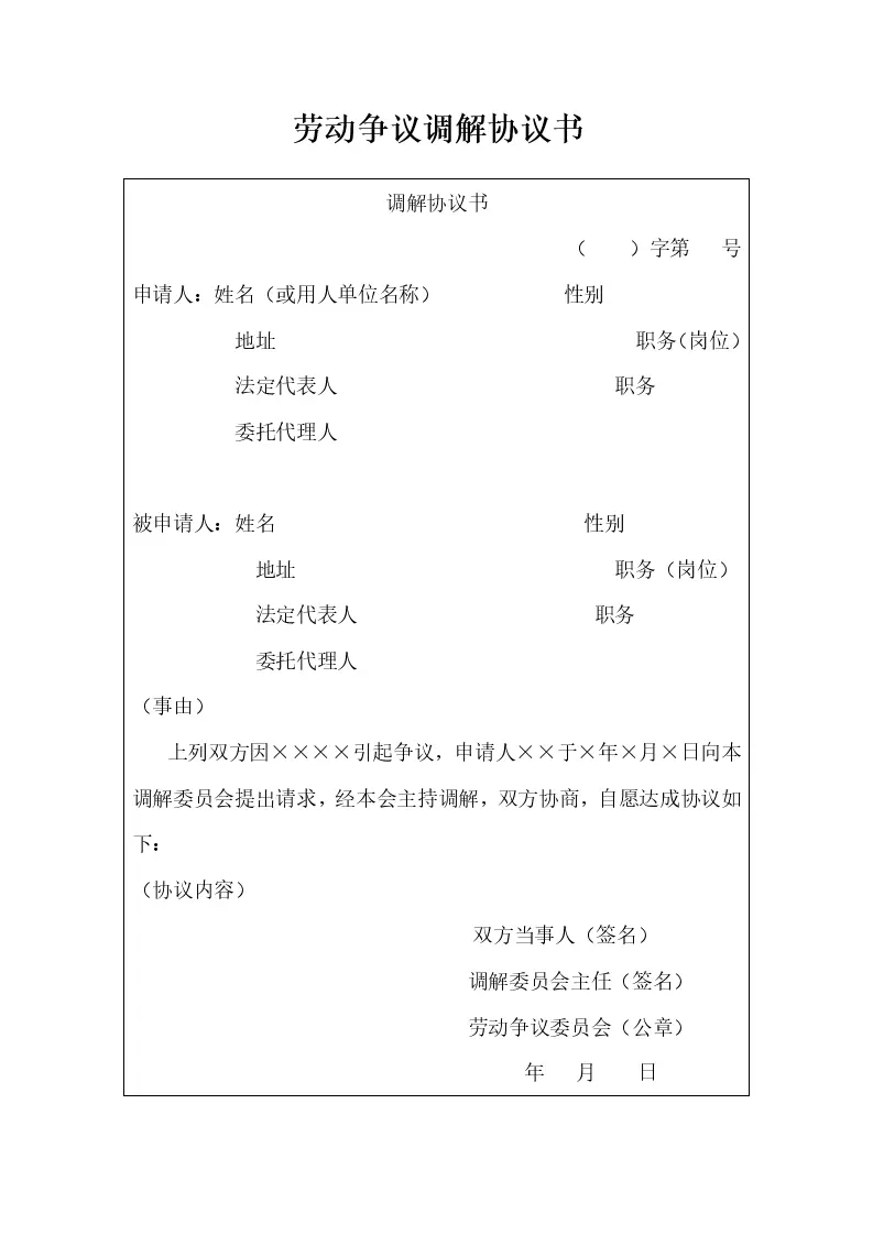 劳动争议调解协议书