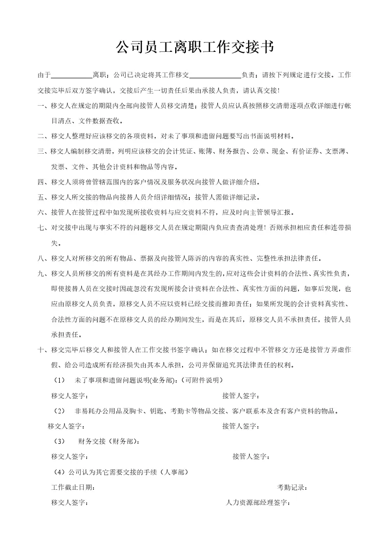 公司员工离职工作交...