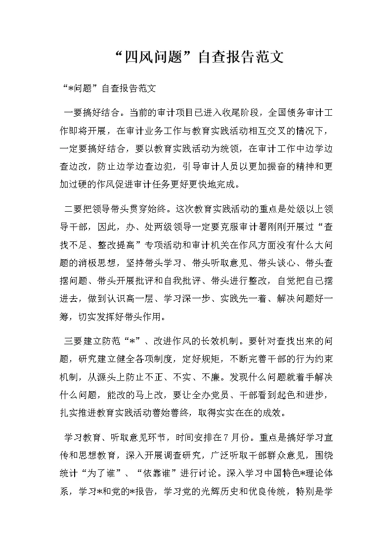 “四风问题”自查报告范文