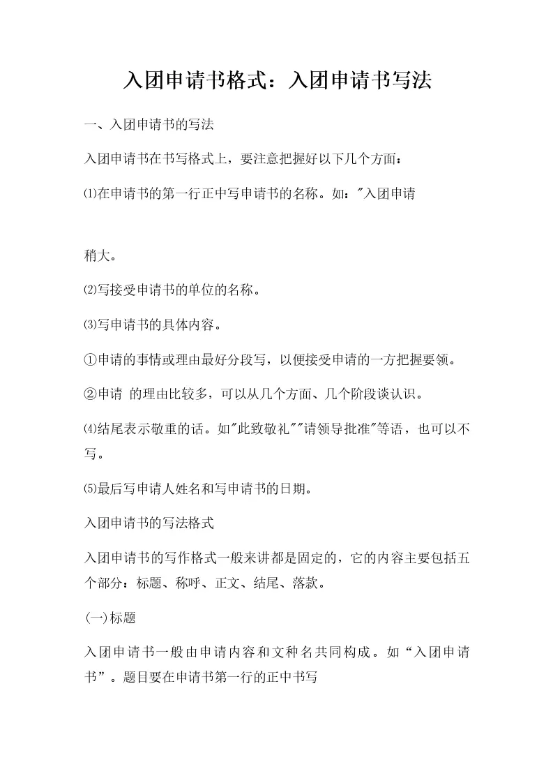 入团申请书格式:入团申请书写法