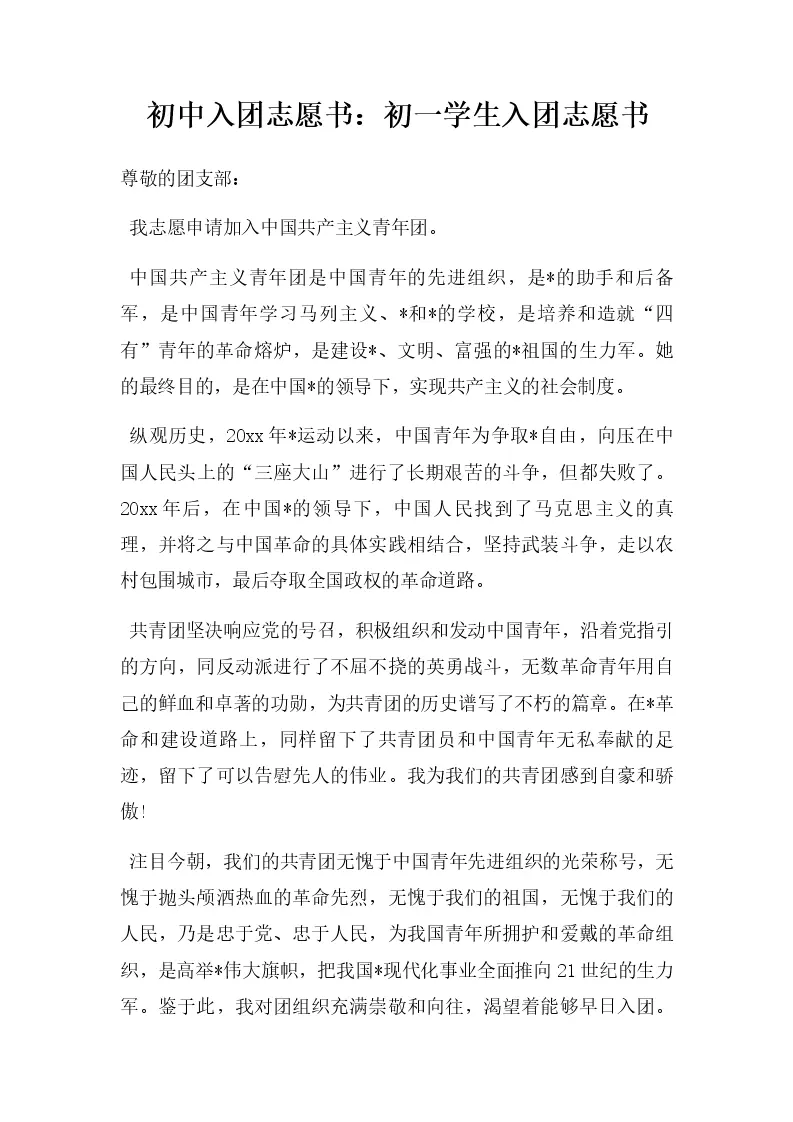 初中入团志愿书:初...