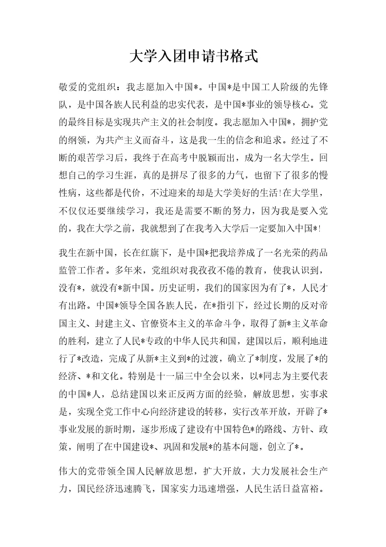 大学入团申请书格式