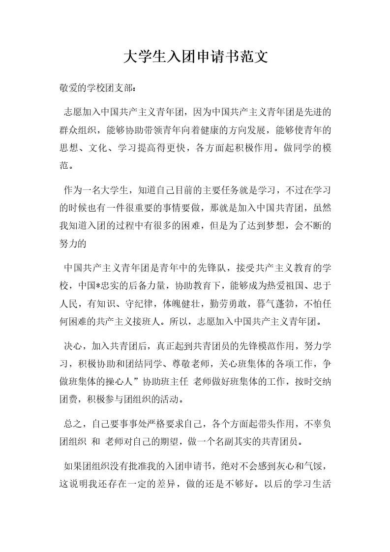 大学生入团申请书范文