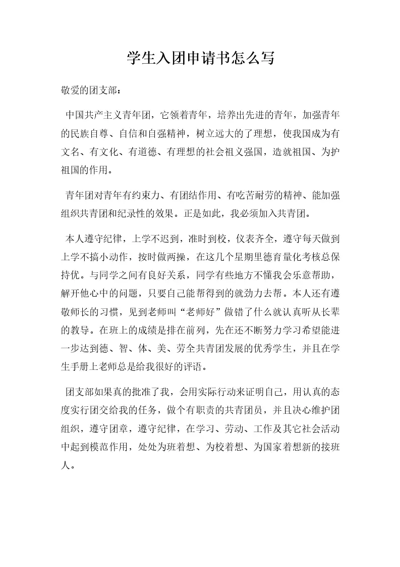 学生入团申请书怎么写