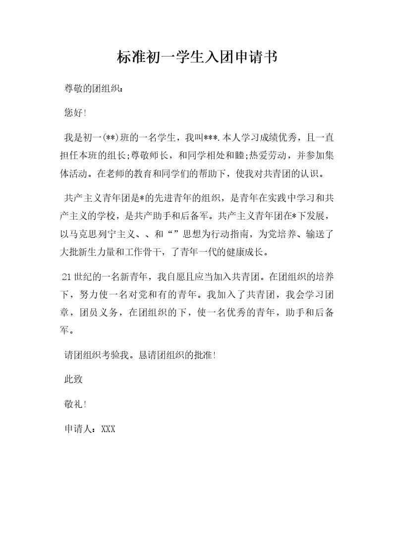 标准初一学生入团申...